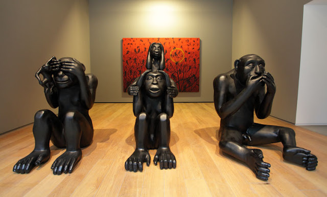 paintings, drawings, and sculptures realized in 2011–12, displays the visual